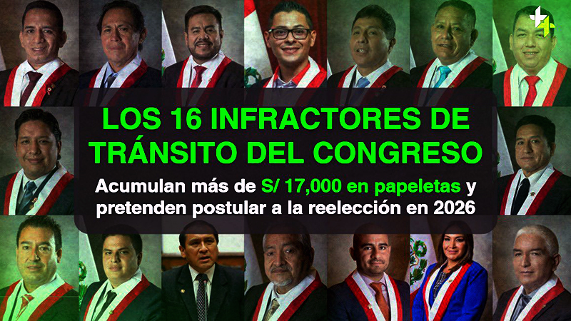 A pesar de recibir un salario base mensual de S/ 15.600 y haber percibido gratificaciones y bonificaciones en diciembre de 2025 que llevaron sus ingresos a aproximadamente S/ 46.700, un grupo de congresistas mantiene multas de tránsito sin pagar. Según información difundida por el programa de noticias online Territorio Tomado, 16 parlamentarios acumulan 36 infracciones de tránsito, clasificadas entre graves y muy graves, que en total superan los S/ 17 mil en sanciones.