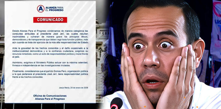 El «Pacto» se quiere sacudir «a toda máquina». Alianza Para el Progreso (APP) exigió la renuncia inmediata de José Jerí a la Presidencia de la República, tras conocerse sus encuentros clandestinos con el empresario chino Zhihua Yang, llevados a cabo en diciembre pasado en un chifa de San Luis y en enero de este año … Sigue leyendo APP exige renuncia inmediata de José Jerí tras sus «reuniones» con empresario chino