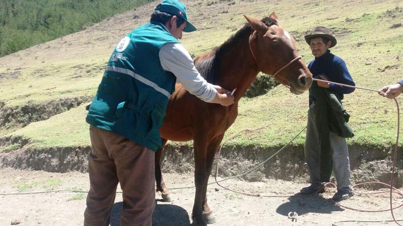 Los servidores del campo del Senasa Apurímac se trasladaron a Pacobamba y San Antonio de Cachi, distritos de la provincia de Andahuaylas, en donde tomaron 40 muestras sanguíneas a equinos de crianza familiar.