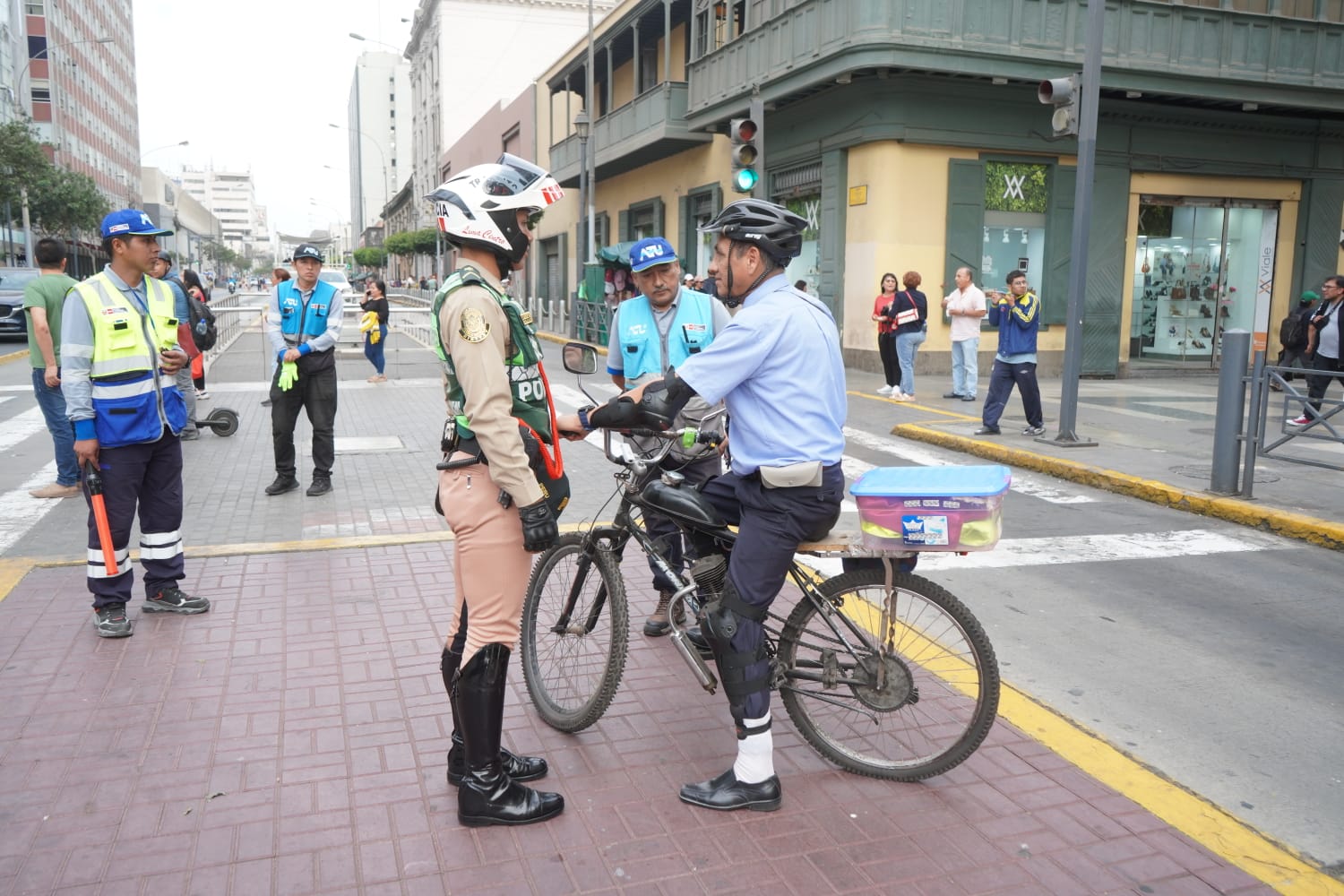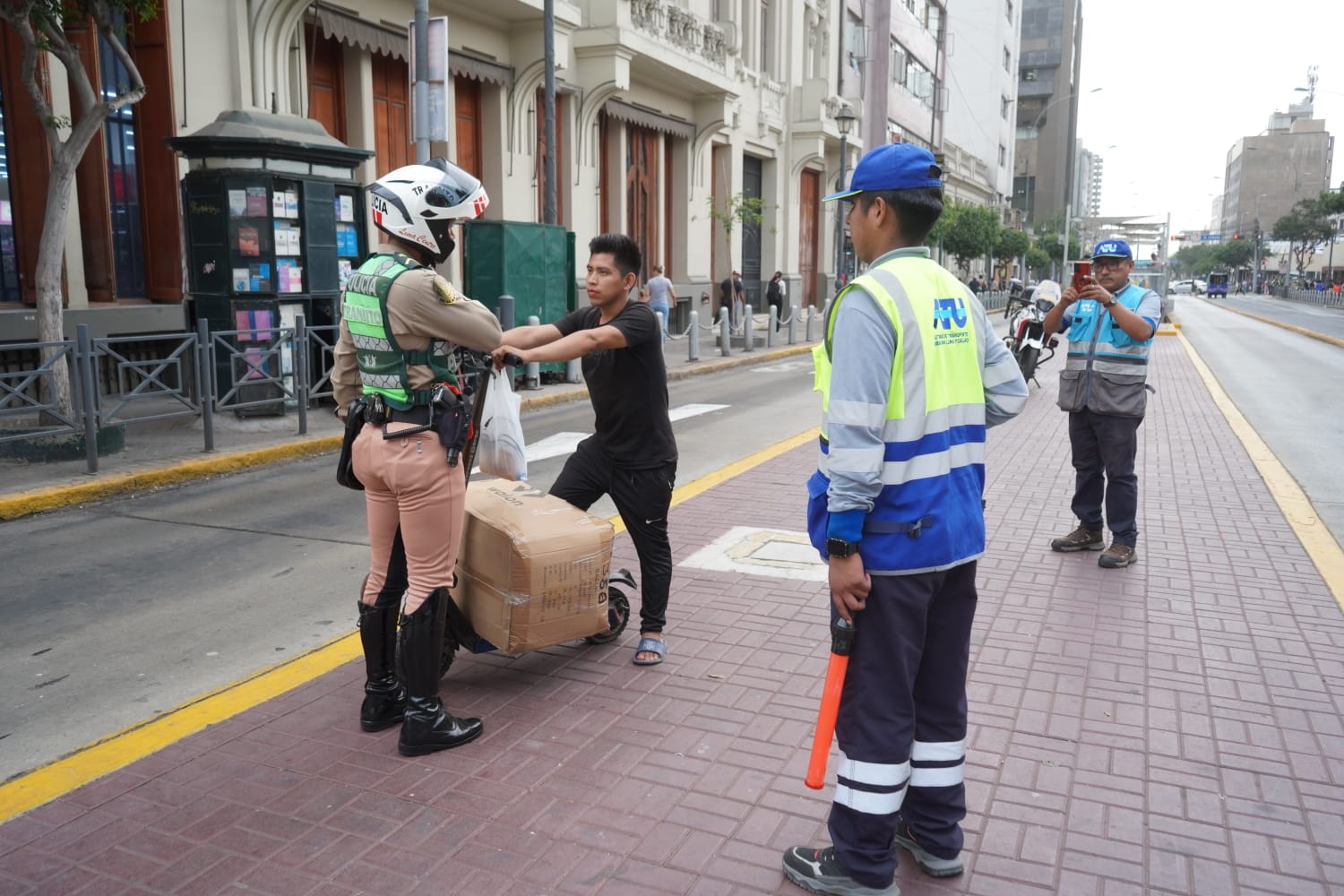 Durante el operativo conjunto con la Policía Nacional del Perú (PNP) realizado este viernes en dos turnos en las inmediaciones de la estación Jirón de la Unión, en el centro de Lima, personal de seguridad de la ATU y agentes de la PNP concientizaron y retiraron de la vía a más de 70 conductores de triciclos adaptados para carga, motos eléctricas, scooter y bicicletas.