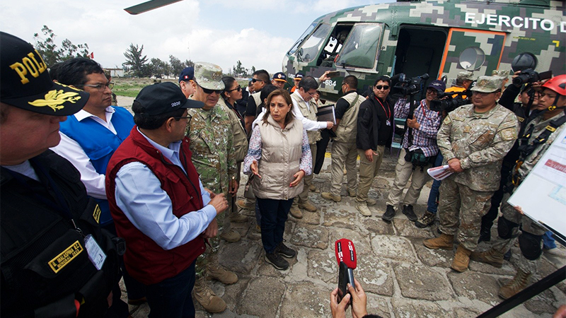 Presidenta Boluarte traslada ayuda humanitaria hacia la zona afectada por huaico, en Arequipa. Se encuentra acompañada por el ministro @JChavezCresta, la titular del @MTC_GobPeru y jefe de @indeciperu. Además, sobrevolará la zona para evaluar acciones en apoyo a la población pic.twitter.com/XUgspLxbbg