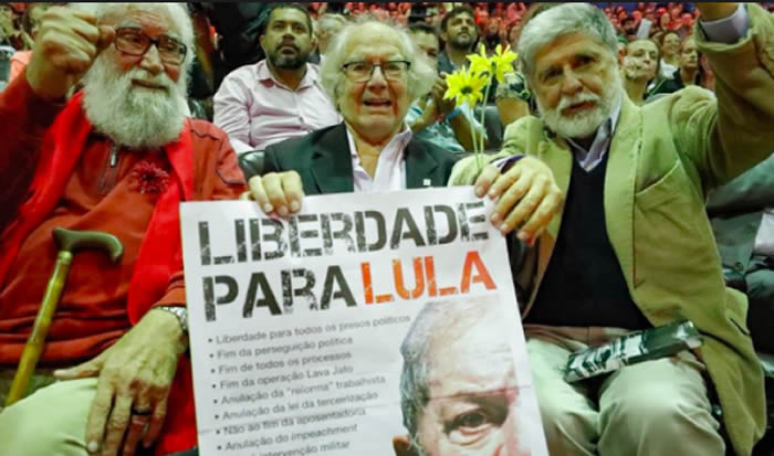 «Estamos aquí en solidaridad del pueblo de Brasil y por la liberación de Lula, quien es un preso político. Hay que tener en cuenta esta política de querer sacarlo del medio para las elecciones», dijo el Nobel argentino durante la caminata masiva que culminará en Brasilia, capital del país, este miércoles 15.