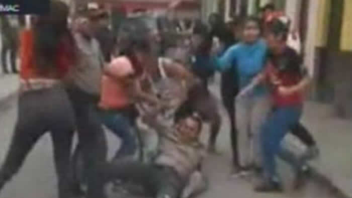 En las imágenes se observa que uno de los agentes forcejea con el hampón, pero es rodeado y atacado por la enardecida turba. El policía es golpeado en la cara y pateado al caer al piso.