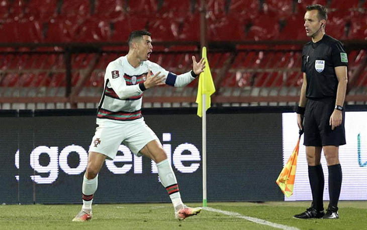 Aún le reservaba la noche otro disgusto: Cristiano Ronaldo lanzaba el balón a la portería serbia, pero Mitrovic, ya en la portería, cortaba e impedía el gol, según el árbitro, aunque no según el capitán portugués, que reclamaba que el balón había entrado en portería, algo que parecían confirmar las repeticiones televisivas de la jugada.