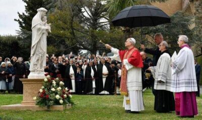 Papa inaugura estatua de Santa Rosa y Mosaico Mariano en Jardines Vaticanos