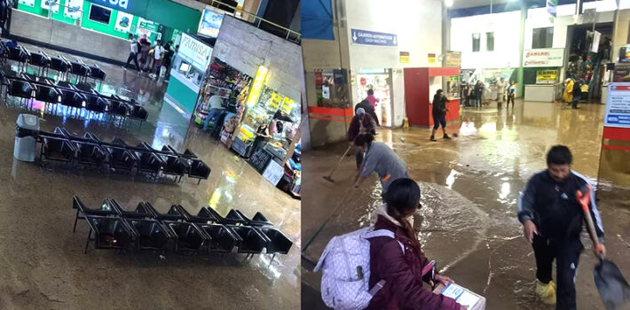 El Terminal Terrestre de Arequipa resultó completamente inundado tras las intensas lluvias que azotaron la ciudad, lo que llevó al cierre de más de cien empresas de transporte y a la suspensión total de las salidas de buses interprovinciales. El evento dejó a decenas de pasajeros varados, mientras comerciantes y trabajadores intentaban rescatar sus pertenencias … Sigue leyendo Cierran el Terminal Terrestre de Arequipa tras quedar inundado por las intensas lluvias