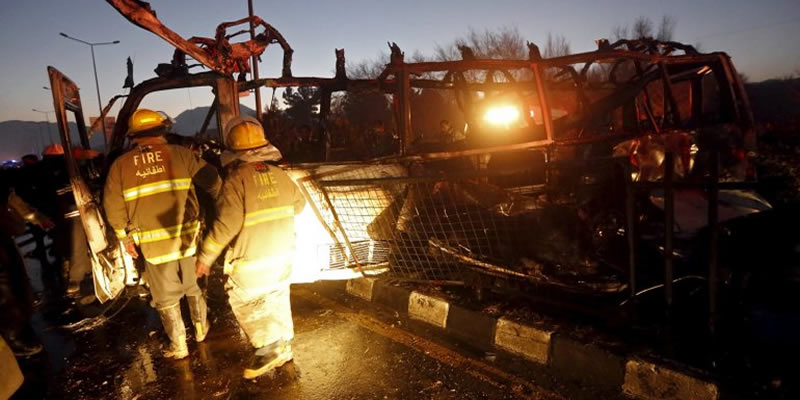 KABUL.- Talibanes suicidas atacaron este miércoles, con un coche bomba que estalló en el bus que trasladaba a personal de la televisión afgana de regreso a sus hogares, dejando al menos 7 muertos y 24 heridos.
