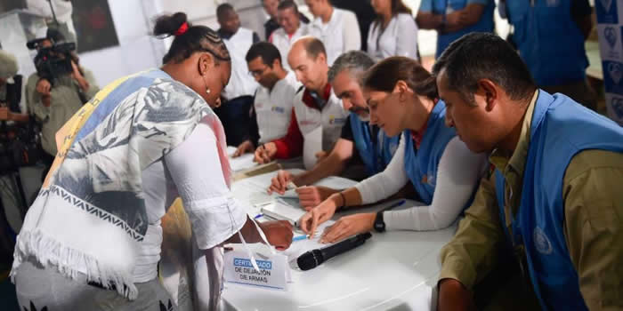 En el lugar se depositó el armamento de los guerrilleros desmovilizados en los contenedores que tiene la ONU para recepcionar dichos elementos.