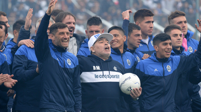 Todavía no está del todo recuperado de una operación a la rodilla pero Maradona no puede esperar.  Fue presentado como entrenador de Gimnasia y Esgrima La Plata y entre las marejadas de los hinchas del ‘Lobo’ que ya sueñan con llegar a lo más alto. .