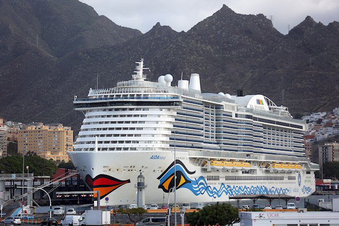 Varios cruceros buscan posicionarse en los puertos de Canarias hasta que pase la crisis del coronavirus, en el puerto de Santa Cruz de Tenerife desde el pasado lunes 16 de marzo se encuentra atracado el AIDAnova, botado en noviembre del 2018 en Alemania para AIDA Cruises. EFE/ Cristóbal García