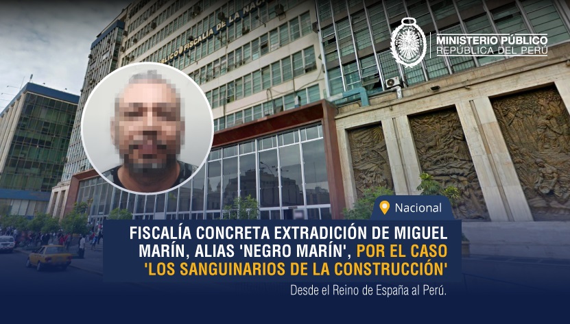 El Ministerio Público, a través de la Oficina de Cooperación Judicial Internacional y Extradiciones, gestionó la extradición de Miguel Marín, alias ‘negro Marín’, quien era requerido por el Estado peruano ante el Reino de España para ser procesado por el caso ‘Los sanguinarios de la construcción’.