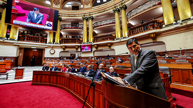 Arroyo Sánchez, acompañado por sus ministros, expuso los lineamientos generales de su administración ante el Pleno del Congreso, cumpliendo con lo estipulado en el artículo 130 de la Constitución Política.