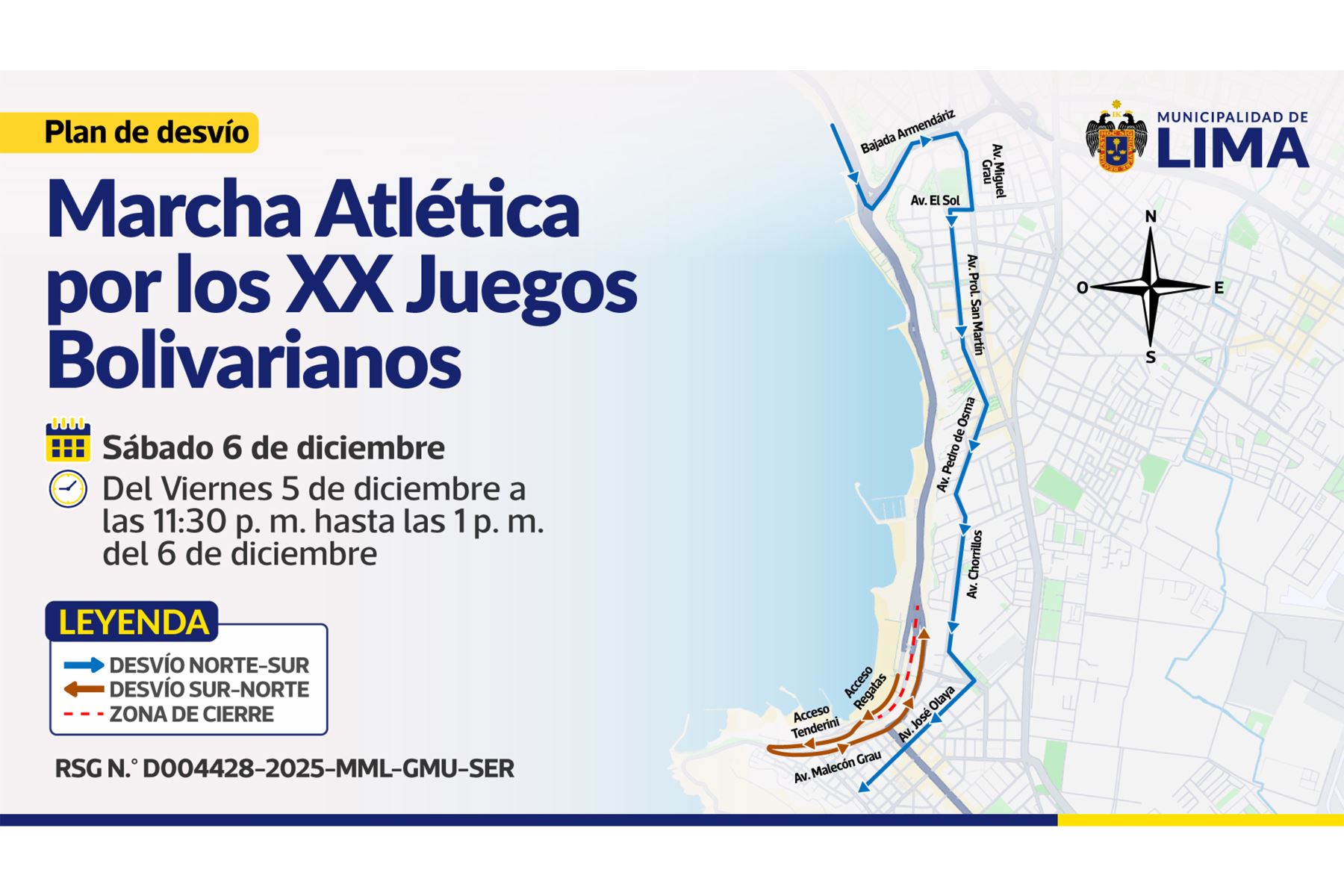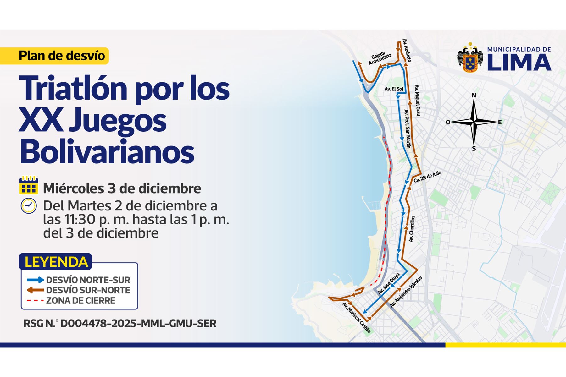 La Municipalidad de Lima anunció nuevos cierres en la Costa Verde, en diversos fechas y horarios debido a las diversas competencias como parte de los XX Juegos Bolivarianos Ayacucho – Lima 2025.