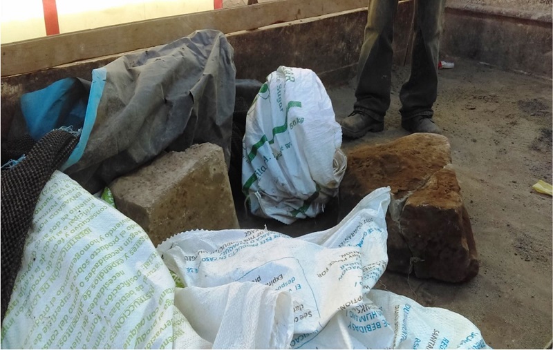 Las acciones de la policía de tránsito fueron al promediar las 15:15 horas del lunes 28, los antes sindicados subían a un camión de placa de rodaje X3M-929 con las piezas líticas.