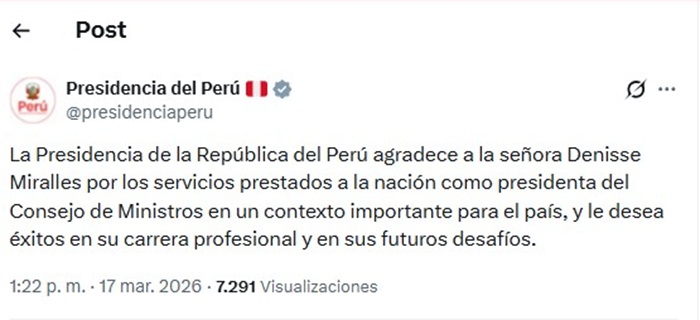 Denisse Miralles juró al cargo de titular del Consejo de Ministros el último 24 de febrero, por lo que estuvo en el cargo 21 días.