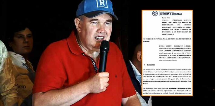 El candidato presidencial Rafael López Aliaga, líder de Renovación Popular, ha sido denunciado penalmente ante el Ministerio Público debido a sus recientes declaraciones en las que exigió la anulación de las Elecciones Generales 2026 y planteó la posibilidad de una «insurgencia civil». La denuncia fue presentada por el abogado Rubén Serpa, quien solicitó la detención … Sigue leyendo Denuncian penalmente a RLA por llamar a la «insurgencia» y exigir anular elecciones