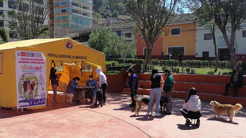 Para la vacunación canina, la DISA Apurímac II inmunizó a los perros que tienen más de 3 meses de vida y fueron llevados con una correa y en muchos casos se tuvo que colocar un bozal. Los dueños que acompañaron a sus mascotas lo hicieron usando doble mascarilla, respetando el distanciamiento social y portando el Documento Nacional de Identidad (DNI).
