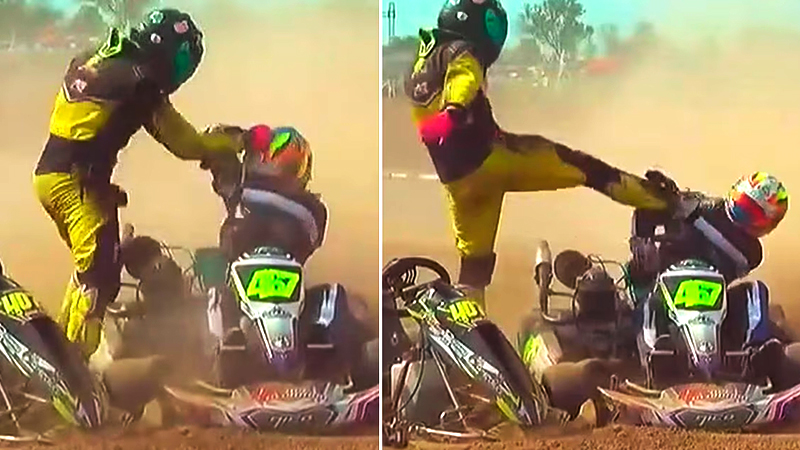 Lo que siguió fue un episodio inesperado: uno de los pilotos abandonó su kart y comenzó a golpear y patear a su oponente, quien todavía permanecía sentado en su vehículo. El altercado, que duró unos minutos, requirió la intervención de varias personas para evitar que la situación escalara aún más.