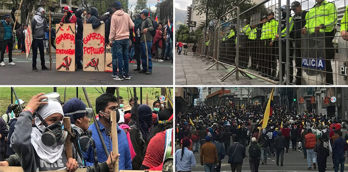 QUITO (Ecuador).- En total 131 periodistas fueron agredidos en los once días de protestas generalizadas en Ecuador por las medidas de austeridad adoptadas por el Gobierno para recibir un crédito de hasta 10,000 millones de dólares, informó la Fundación Andina para la Observación y Estudios de Medios, Fundamedios. La mayoría de las agresiones fueron cometidas … Sigue leyendo Ecuador: 131 periodistas fueron agredidos física y verbalmente en 11 días de protestas