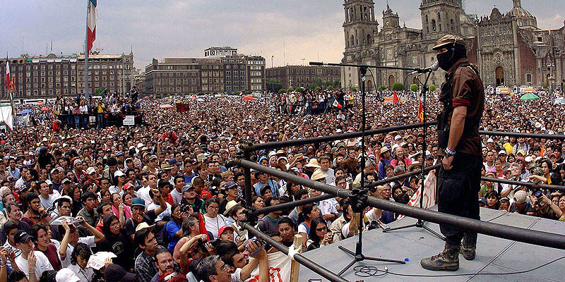 Al frente del grupo rebelde se colocó el denominado «subcomandante Marcos», quien logró atraer la atención de medios de prensa nacionales e internacionales.