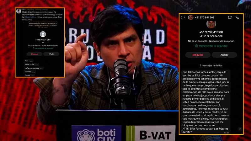 El comunicador y streamer Víctor Caballero, conocido como «Curwen», denunció mediante su cuenta oficial en X (antes Twitter) que fue víctima de mensajes extorsivos. En dichos mensajes, los presuntos delincuentes, identificados como parte de «Los Injertos de VMT», le exigen un pago semanal de S/ 300 «para empezar a trabajar».