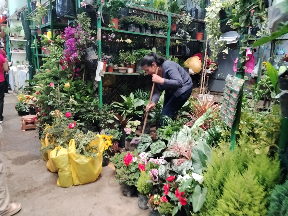 Logística inversa y mantenimiento del activo: la operatividad del mercado revela una gestión logística impresionante. Desde la descarga de plantas vivas hasta la limpieza constante de los pasillos para mantener el atractivo comercial, todo funciona con una precisión coreográfica. El mantenimiento del espacio no es un gasto, es una inversión para asegurar el retorno del cliente. Cada barrida y cada ordenamiento de macetas es una acción microeconómica para preservar el valor del activo.
