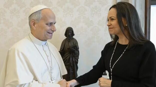 EL VATICANO.- El Papa León XIV recibió este lunes en audiencia privada en el Vaticano a la líder de la oposición venezolana y Premio Nobel de la Paz, María Corina Machado. El encuentro se produce poco más de una semana después de la captura del presidente de Venezuela, Nicolás Maduro, en el ataque de Estados … Sigue leyendo El Papa León XIV se reunió con la líder de la oposición venezolana María Corina Machado