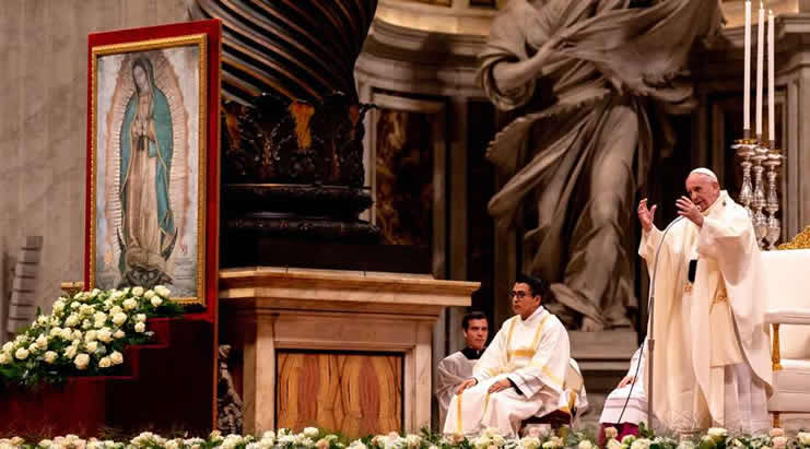 El pontífice argentino, en español y junto a un icono de la patrona de América bajo el Baldaquino de San Pedro, se refirió a la Virgen como «señora, madre y mestiza» y aseguró: «No podemos pensar la Iglesia sin ese principio mariano que se extiende».
