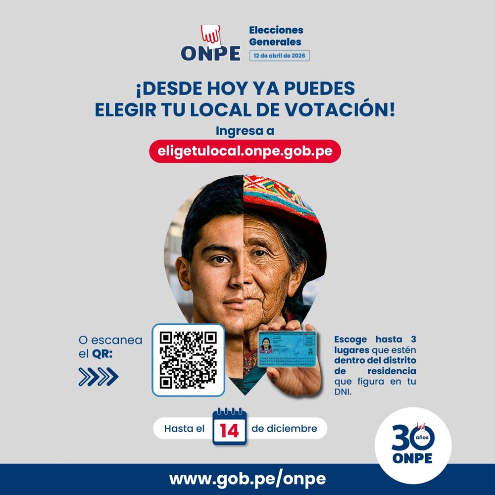 La Oficina Nacional de Procesos Electorales (ONPE) habilitó una plataforma para que todos los ciudadanos puedan seleccionar hasta tres (3) opciones de local de votación cercano al domicilio con miras a las Elecciones Generales 2026 (12 de abril).