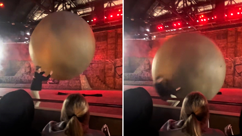 El episodio fue captado en varios videos grabados por espectadores presentes, quienes más tarde compartieron las imágenes en redes sociales. Estos videos muestran cómo la gran roca artificial, usada generalmente en una escena que imita la famosa persecución de «En busca del arca perdida», se desvió inesperadamente de su trayectoria normal durante la actuación.