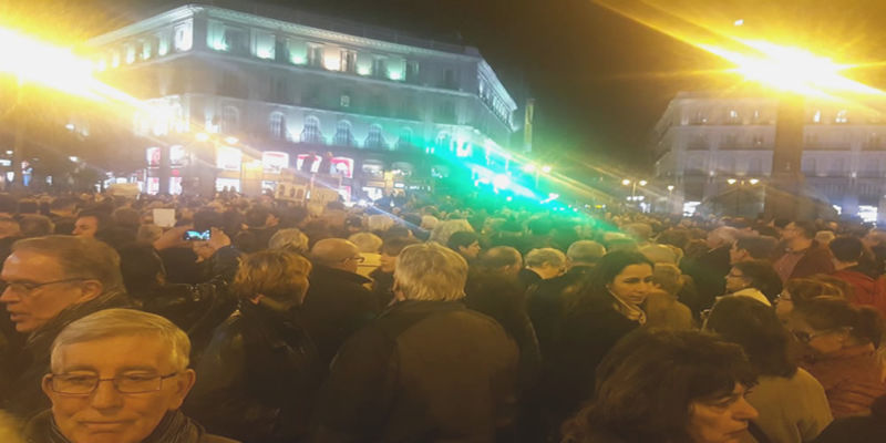 MADRID/España- Centenares de personas protestaron este viernes en la emblemática Puerta del Sol, en contra de la resolución judicial que absolvió a la infanta Cristina y permitió la libertad sin fianza a su esposo, Iñaki Urdangarin en dos delitos fiscales.