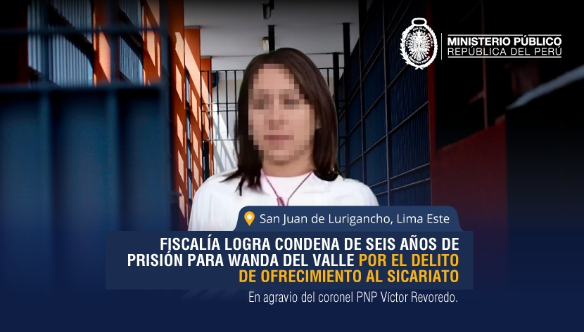 La Primera Fiscalía Penal de San Juan de Lurigancho–Zona Alta (Primer Despacho), a cargo de la fiscal provincial Gabriela Teresa Pascual Serna, logró que se condene a seis años, un mes y 22 días de prisión efectiva a Wanda del Valle por el delito de ofrecimiento para el sicariato en agravio del entonces coronel de la Policía Nacional del Perú, Víctor Revoredo.
