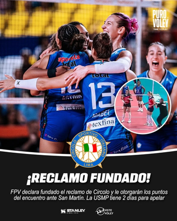 La Federación Peruana de Vóley dio la razón al Circolo Sportivo Italiano en su queja formal contra la Universidad San Martín. El fallo surge tras detectarse la presencia simultánea de cuatro jugadoras internacionales en el campo, lo que convierte al equipo de Pueblo Libre en el ganador oficial del encuentro.