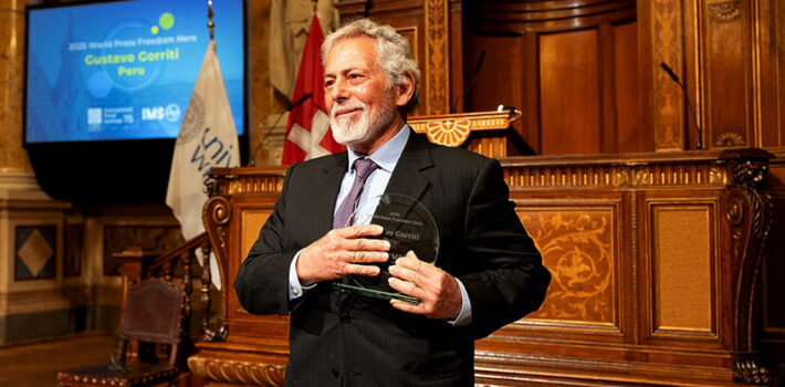 Gustavo Gorriti, director de IDL-Reporteros, fue galardonado con el Premio Héroe Mundial de la Libertad de Prensa 2025, otorgado por el Instituto Internacional de Prensa (IPI) y Media Support (IMS). La ceremonia se llevó a cabo en la Universidad de Viena, Austria, frente a periodistas de diversos países. Este reconocimiento pone en valor su destacada … Sigue leyendo Gustavo Gorriti recibe en Viena Premio Héroe Mundial de la Libertad de Prensa (VIDEO)
