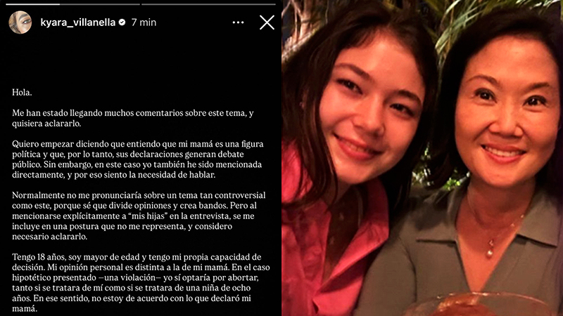 Kyara Villanella, la hija mayor de Keiko Fujimori, expresó su desacuerdo con las recientes declaraciones de su madre, quien reafirmó su oposición al aborto incluso en casos de violación. Esta causa sigue estando penalizada en Perú, un país que enfrenta una de las tasas más altas de violencia sexual en Sudamérica.