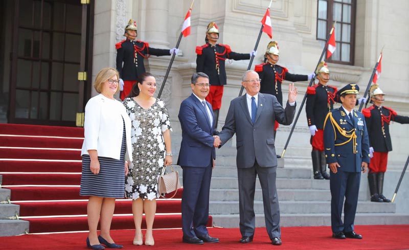En la recepción también participaron las primeras damas de ambos países, Nancy Lange, esposa de Kuczynski, y la hondureña Ana García.