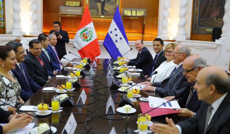 Hernández también planteó a Kuczynski su deseo de «afinar» detalles del tratado de libre comercio (TLC) que ambos países suscribieron, para afianzar así las relaciones comerciales entre Honduras y Perú.