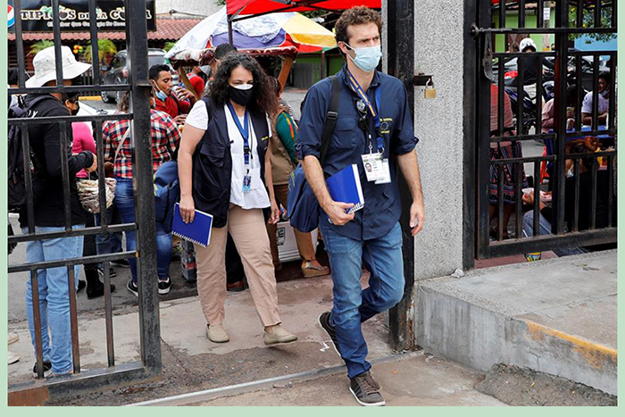 Ribeiro y el francés De Maillard planifican todos los días la jornada del día siguiente y hoy, acompañados de la agencia EFE, visitaron la Universidad Pedagógica Nacional Francisco Morazán, en Tegucigalpa, donde observaron el plan para el registro electoral de la ciudadanía, conocido como enrolamiento, y la dotación de la nueva tarjeta de identidad.