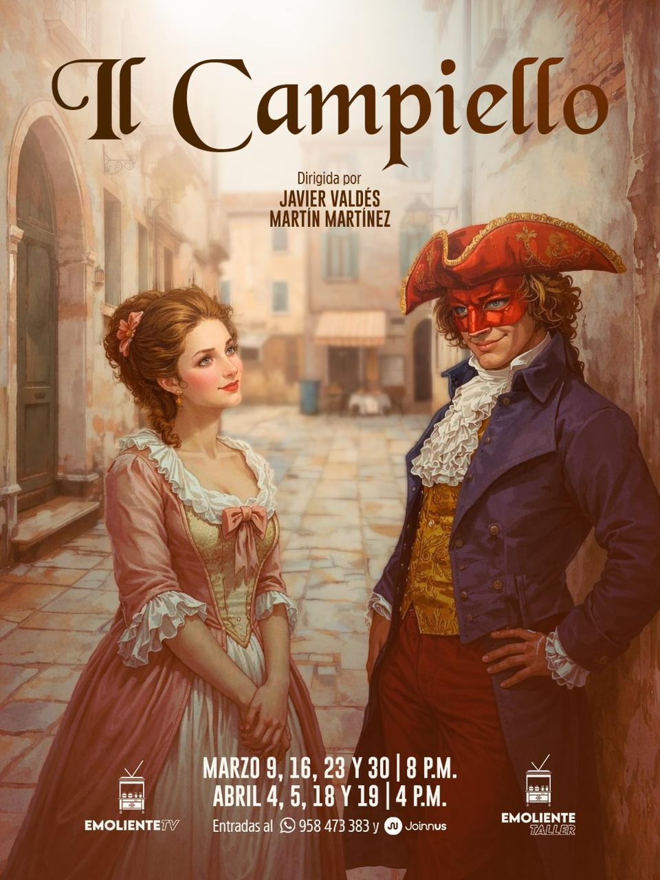 Il Campiello, (1756), famosa comedia escrita por Carlo Goldini, vuelve una vez más al Teatro de Lucía, bajo la dirección de los reconocidos actores Javier Valdés y Martín Martínez, quienes proponen una versión fresca y dinámica de este clásico del teatro universal, con la participación de jóvenes actores salidos del taller de Emoliente Tv.