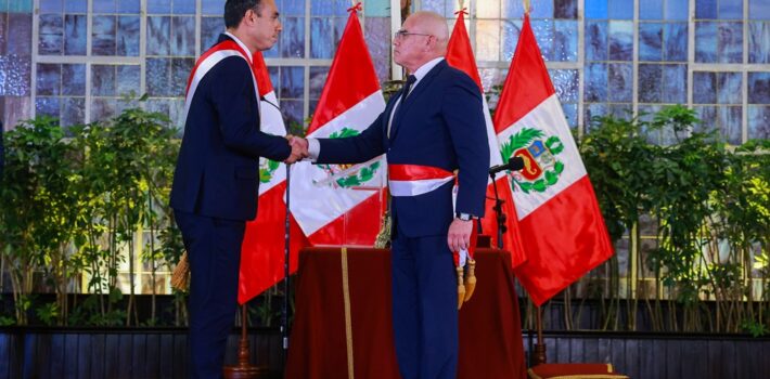 El mandatario, José Jerí Oré, tomó este martes 14 de octubre juramento a los nuevos ministros de Estado con lo que quedó compuesto su gabinete al que ha llamado de amplia base y de reconciliación nacional. La ceremonia de juramentación se realizó desde las 17 horas en el Gran Comedor de Palacio de Gobierno en … Sigue leyendo Palacio de Gobierno: presidente Jerí tomó juramento a los ministros de Estado