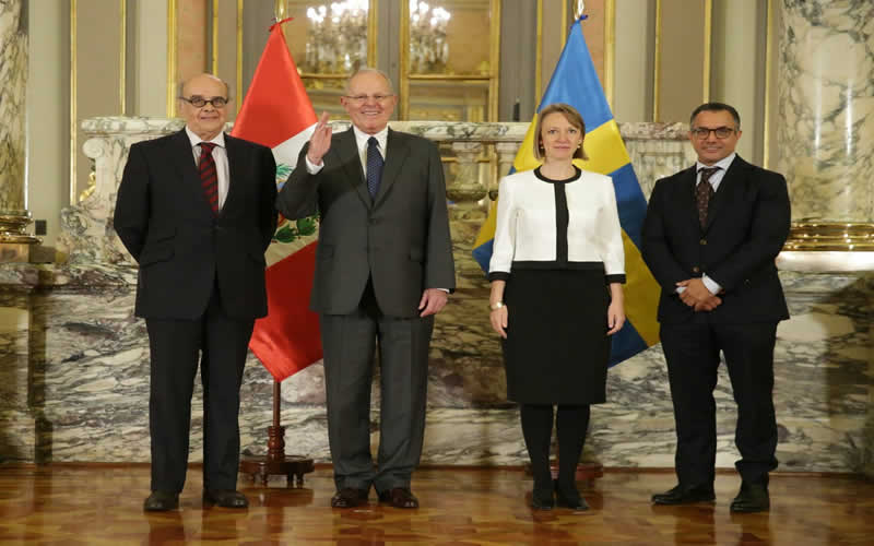 El presidente de la República, Pedro Pablo Kuczynski, recibió hoy en el Palacio de Gobierno las cartas credenciales de los nuevos embajadores de Grecia, Uruguay, Egipto y Suecia en nuestro país.