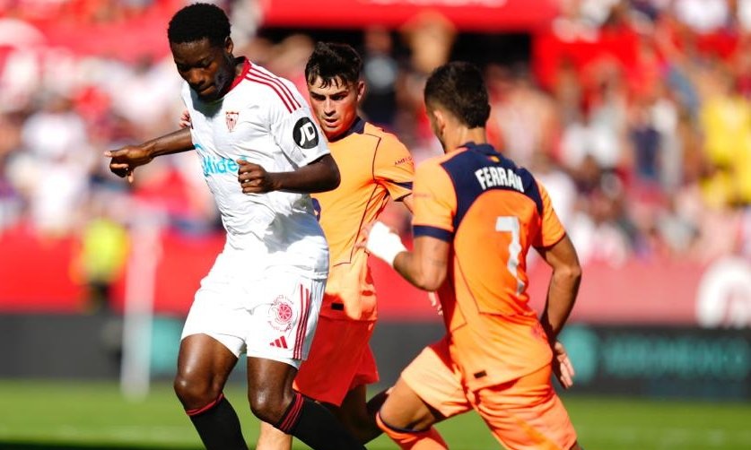 La primera parte en el Sánchez-Pizjuán se convirtió en un auténtico martirio para los del DT Hansi Flick, superados claramente por un Sevilla que se llevó una ventaja corta al intermedio. El conjunto del DT Matías Almeyda asedió una y otra vez el área de Wojciech Szczesny e Isaac Romero, el mejor de los primeros 45 minutos, perdonó, al menos, tres claras ocasiones de gol.