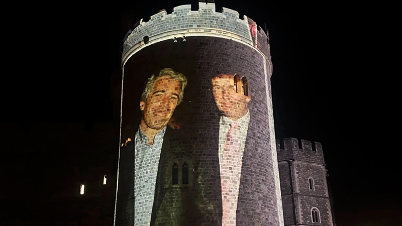 🚨BREAKING: Donald Trump with Jeffrey Epstein has been projected onto Windsor Castle as the U.S. President arrives for his second state visit of the UK. pic.twitter.com/lyjQQRGv7k