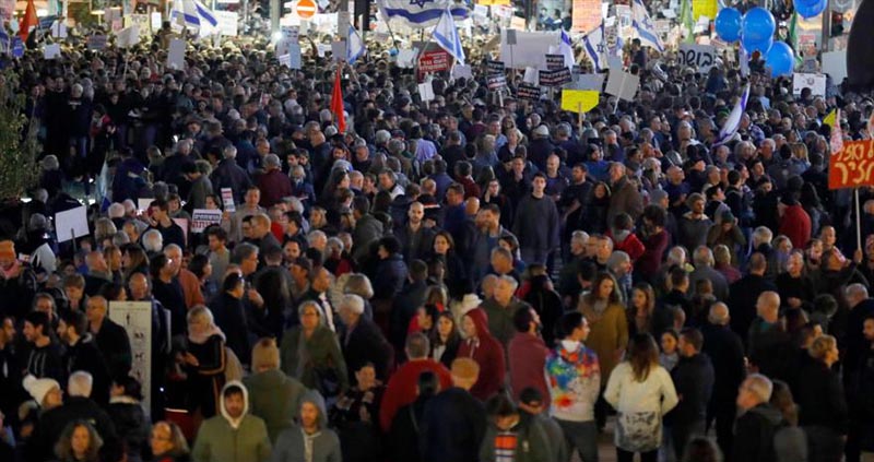 La repentina multiplicación en la cantidad de asistentes se debió no solo a la cercanía temporal con la segunda vista del juicio contra el primer ministro, prevista para el próximo domingo, sino también a la incautación, en los últimos días, de muchas de las estructuras y equipos utilizados por los manifestantes y hasta algunas de sus pertenencias personales, desencadenando enfrentamientos con la Policía.