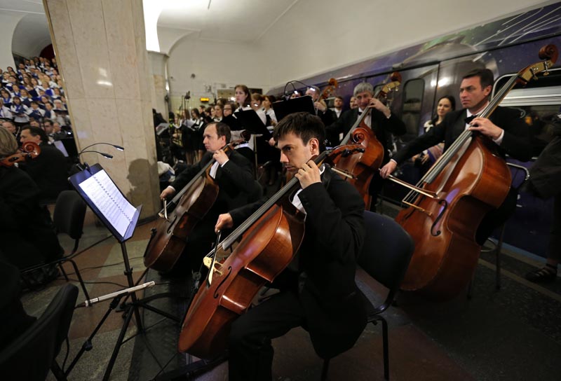 El espectáculo tuvo lugar en la estación Kropótkinskaya, donde cantaron, ante el público, solistas del Bolshoi, la Ópera Real Danesa y prestigiosos colectivo corales, que interpretaron Cavalleria Rusticana, del compositor italiano Pietro Mascagani.