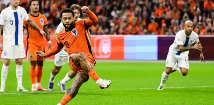 Memphis Depay, con dos asistencias y un tanto, facilitó la goleada de Países Bajos en el Johan Cruyff Arena ante Finlandia (4-0) que la deja con un pie en la fase final del Mundial 2026, a falta de dos jornadas para que termine la liguilla del Grupo G europeo de clasificación. El equipo del DT Ronald Koeman lidera el grupo con seis puntos de ventaja sobre Polonia, … Sigue leyendo Mundial Europa 2026: Países Bajos cerca a clasificar goleando por 4-0 a Finlandia