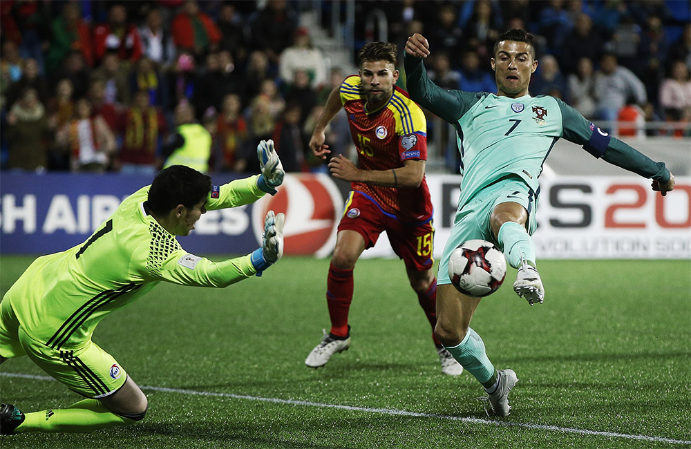 Cristiano Ronaldo, que salió desde el banquillo en la segunda parte, desatascó esta sábado a una Portugal que mostró dificultades para crear peligro en Andorra e inició la victoria (2-0) que les permite seguir soñando con el pase directo al Mundial de Rusia.