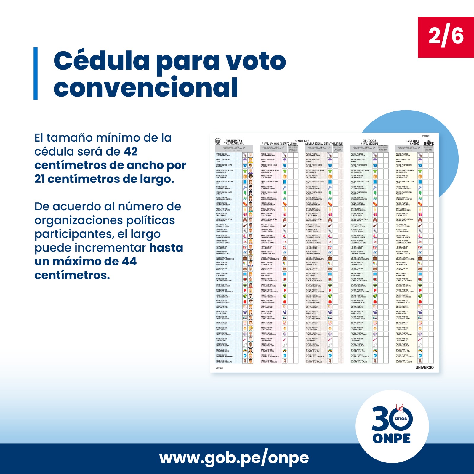 La ONPE presentó la cedula de sufragio para las elecciones generales de abril de 2026