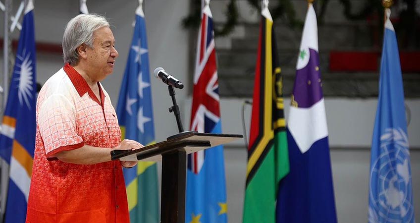 A propósito de su más reciente viaje, el titular de Naciones Unidas lanzó un SOS global al advertir por el desbordamiento de los océanos y sus consecuencias en una región que solo emite 0.02 por ciento de las emisiones mundiales.