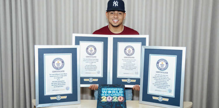 El cantante puertorriqueño Ozuna ha sumado a sus premios y reconocimientos cuatro récords que han sido reconocidos oficialmente este lunes por la organización Guinness y aparecen en la edición 2020 de su famoso libro, ya publicada en inglés. De acuerdo con la autoridad en récords, Juan Carlos Ozuna Rosado, más conocido como Ozuna, es el … Sigue leyendo Ozuna: Cantante puertorriqueño suma cuatro récords Guinness a su colección de trofeos